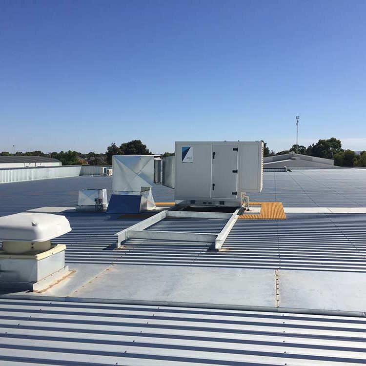 Design & scope of works brief were provided by an Engineering company for Air conditioning the High & Low Risk Vegetable Processing Room. Sims Refrigeration installed an Indec Indirect Evaporative Cooler complete with Hepa Air filtration and Exhaust system. This system provides full fresh air to remove vegetable processing smells while maintaining a designated room temperature of 18 Degrees C